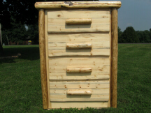 | This attractive 4-Drawer Chest features large euro-glide drawers and thick solid pine top with log edging. The standard chest comes with solid Pine Front drawers with log pulls. Upgrade with your choice of drawer style: 2-Log Fronts or 3-Log Drawers that are notched on the bottom, or Log Slab or 2-Log Fronts with a Log Pull. Choose to add "Footprints" to your chest for added style & beauty. (Footprints: Attractive log trim at floor.) See above right picture for example. Don't forget to order the beautiful matching mirror! Due to the rustic nature of log furniture, all dimensions are approximate. |