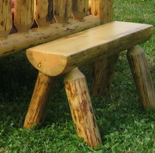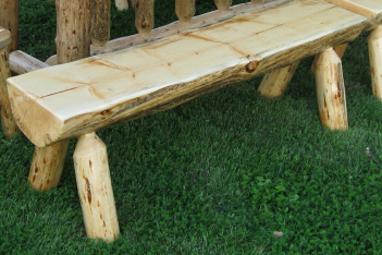 | The Half-Log Bench features a beautiful solid half-log seat. We use mortise and tenon construction for maximum durability and strength. The bench can be made to almost any length and looks great anywhere in your home. Add one to the end of your bed, as an accent in the living room, or use as stylish seating to finish off your dining room set. Due to the rustic nature of log furniture, all dimensions are approximate. |