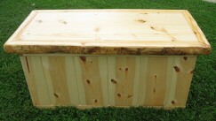| This Grizzly Hope Chest, accented with hand-peeled logs, offers rustic style while providing the ultimate in function. Use it as a blanket box at the end of your bed, as decorative storage in the entryway or as a coffee table in the living room. The lid is supported by 2 sturdy hinges for safety and durability. Due to the rustic nature of log furniture, all dimensions are approximate. |